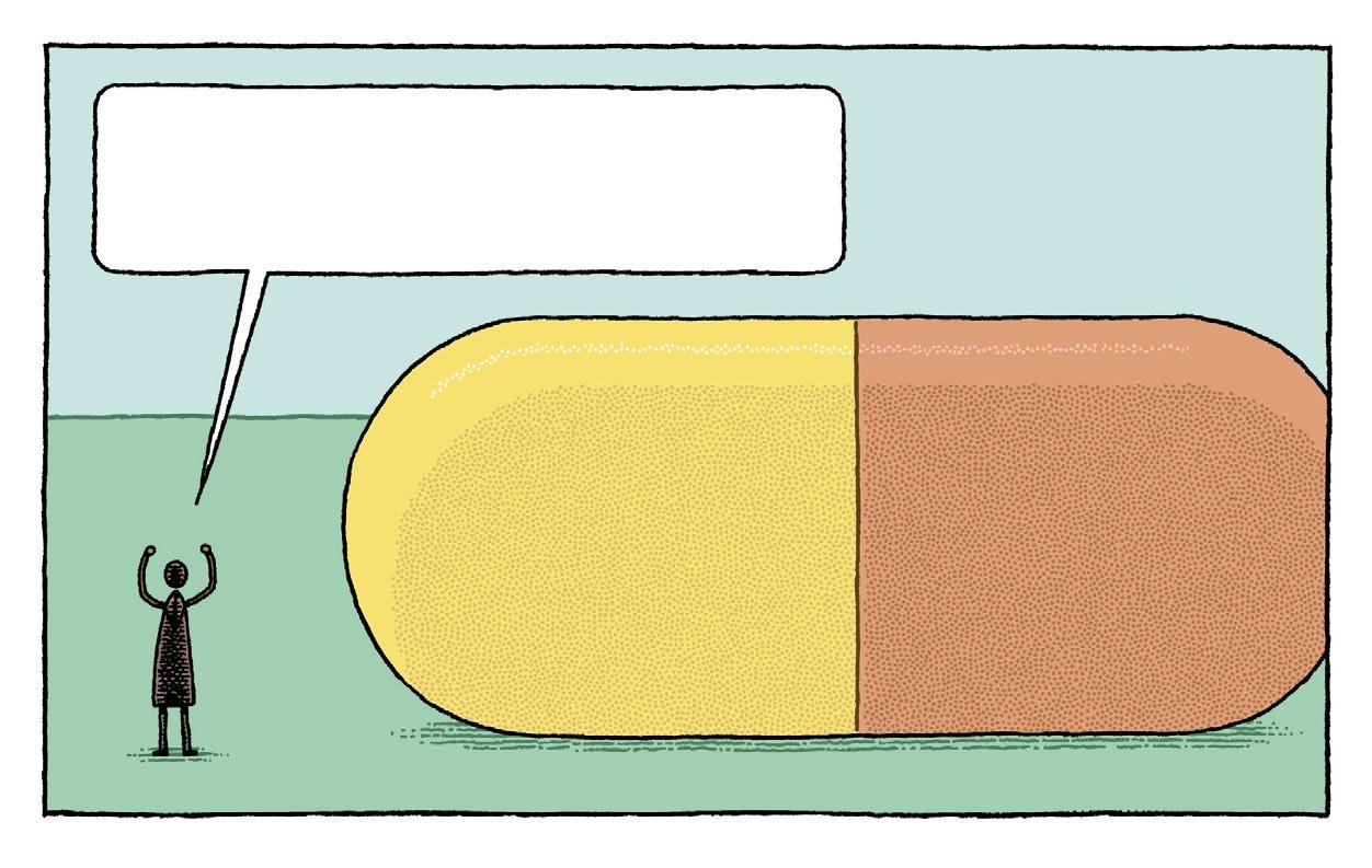 Hourra ! Ma pilule de miniaturisation est un succès ! À présent, il me suffit d’avaler cette pilule antidote et de rédiger mes conclusions.