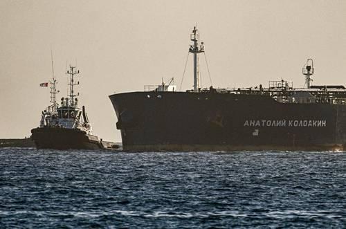 ▲ El petrolero ruso Anatoly Kolodkin en su ingreso al puerto de Matanzas, Cuba, donde comenzó de inmediato a entregar petróleo enviado por el gobierno de Moscú.Foto Afp