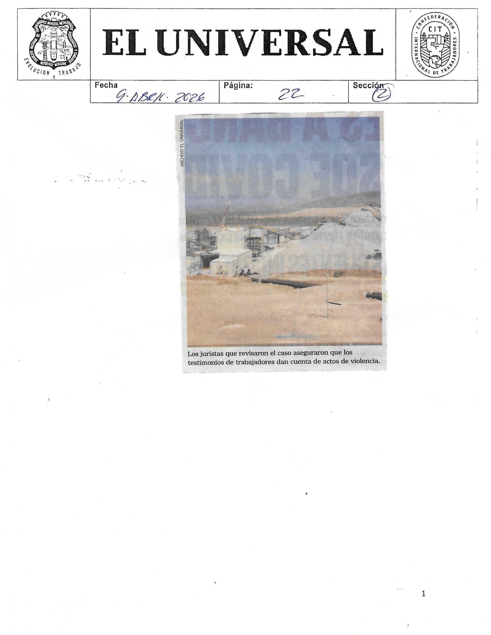 “Las actuaciones del panel corroboraron que la mina contrató a un narcotraficante para interrumpir las reuniones sindicales con personas armadas, proferir amenazas de muerte y obligar a los trabajadores a aceptar el sindicato preferido de la empresa”, señala el Departamento de Trabajo estadunidense sobre el fallo.
