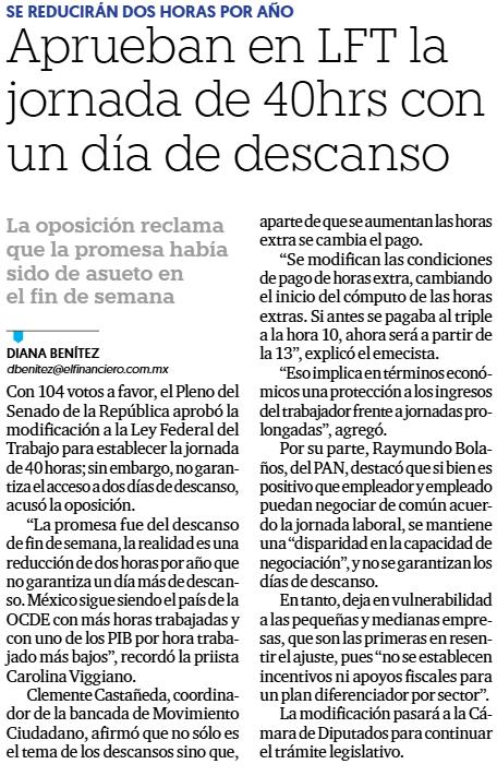 El Senado aprobó modificaciones a la Ley Federal del Trabajo (LFT) para reducir de manera paulatina la semana laboral a 40 horas, y remitió la minuta a la Cámara de Diputados para su análisis y votación.