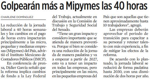 La reforma plantea que la reducción de la jornada laboral a 40 horas se alcanzará de manera gradual, tal como establece la Constitución. En 2026, aún será de 48 horas a la semana, luego bajará dos horas cada año, hasta llegar a las 40 en 2030. Por cada seis días de trabajo se deberá otorgar, por lo menos, un día de descanso con goce de salario íntegro, añade.