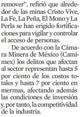 "El Gobierno obviamente debería estar reforzando por todos lados la seguridad, no nada más para el sector minero, sino para todo el sector productivo y trabajador en la misma Entidad": Heriberto Verdugo