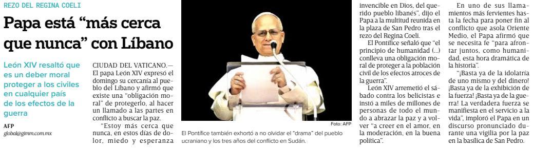 El sábado, el Papa imploró públicamente a los líderes que pusieran fin a la violencia, al señalar: “¡basta de la idolatría del yo y del dinero! ¡Basta de las demostraciones de poder! ¡Basta de guerra!”.