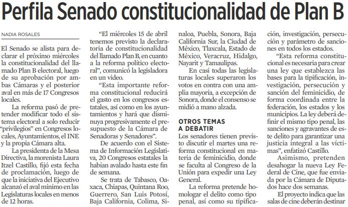 Periódico La Jornada Lunes 13 de abril de 2026, p. 5 Morena en el Senado aseguró que no está en riesgo el ahorro de los trabajadores con la nueva Ley para el Fomento de la Inversión en Infraestructura Estratégica, mientras el PRI en la Cámara de Diputados advirtió que el gobierno está quebrado y busca recursos de donde sea y de quien sea, sin importar las consecuencias.