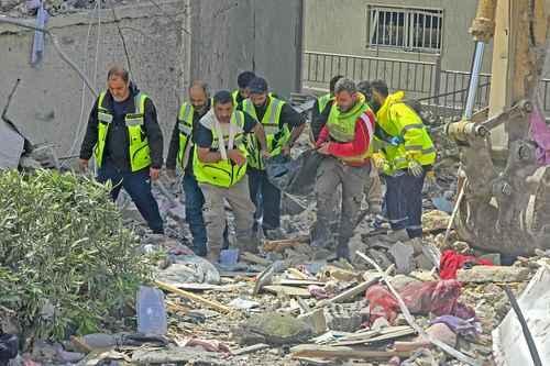 ▲ Rescatistas trabajaron arduamente para recuperar víctimas de bombardeos en la aldea de Qana, en el sur de Líbano, tras ser blanco de ataques de las Fuerzas de Defensa de Israel.Foto Afp