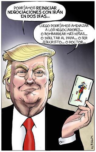 “claramente no está bien”. The New York Times, al informar de estos comentarios, agregó que funcionarios de la Casa Blanca insisten en que el mandatario emplea su retórica como una táctica sofisticada de negociación y para confundir a sus opositores, algo que siempre ha hecho.
