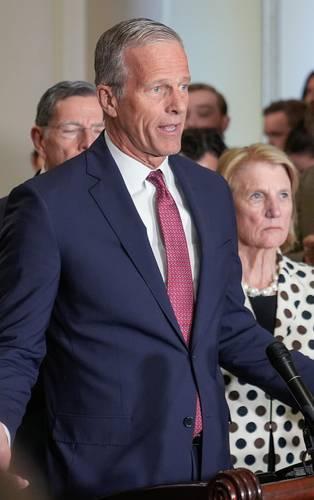 ▲ John Thune, líder republicano en el Senado y aliado del mandatario estadunidense (izquierda), se opuso a las críticas de Trump contra el Papa y pidió que las detuvieraFoto Ap