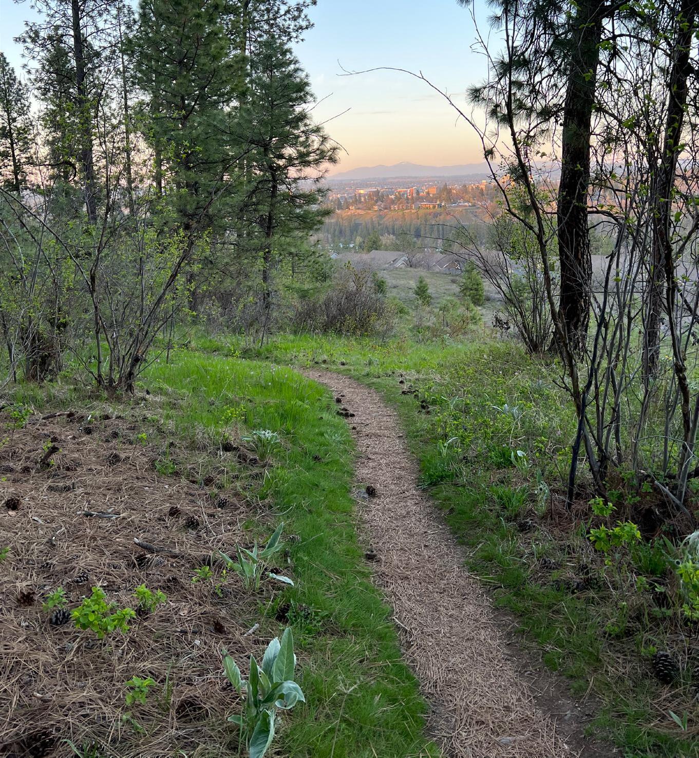 Spokane to Medical Lake in the early 1900s. The recently-acquired land, willingly sold by a private landowner, locks down an addition al 1,000 feet of the historic trail so it will be open to the public for the foreseeable future. Visit blog posts from January at Spokanecity. org for a map highlighting the specific area of purchase. The new property can be accessed via the 18th Street right-of-way off south C Street in the Grandview neighborhood. On this trail, pine trees tower, wildlife thrives, and you can catch hillsides full of arrowleaf balsamroot by mid-spring. Find the official Trolley Trail trailhead off S. Assembly Road. (OTO)