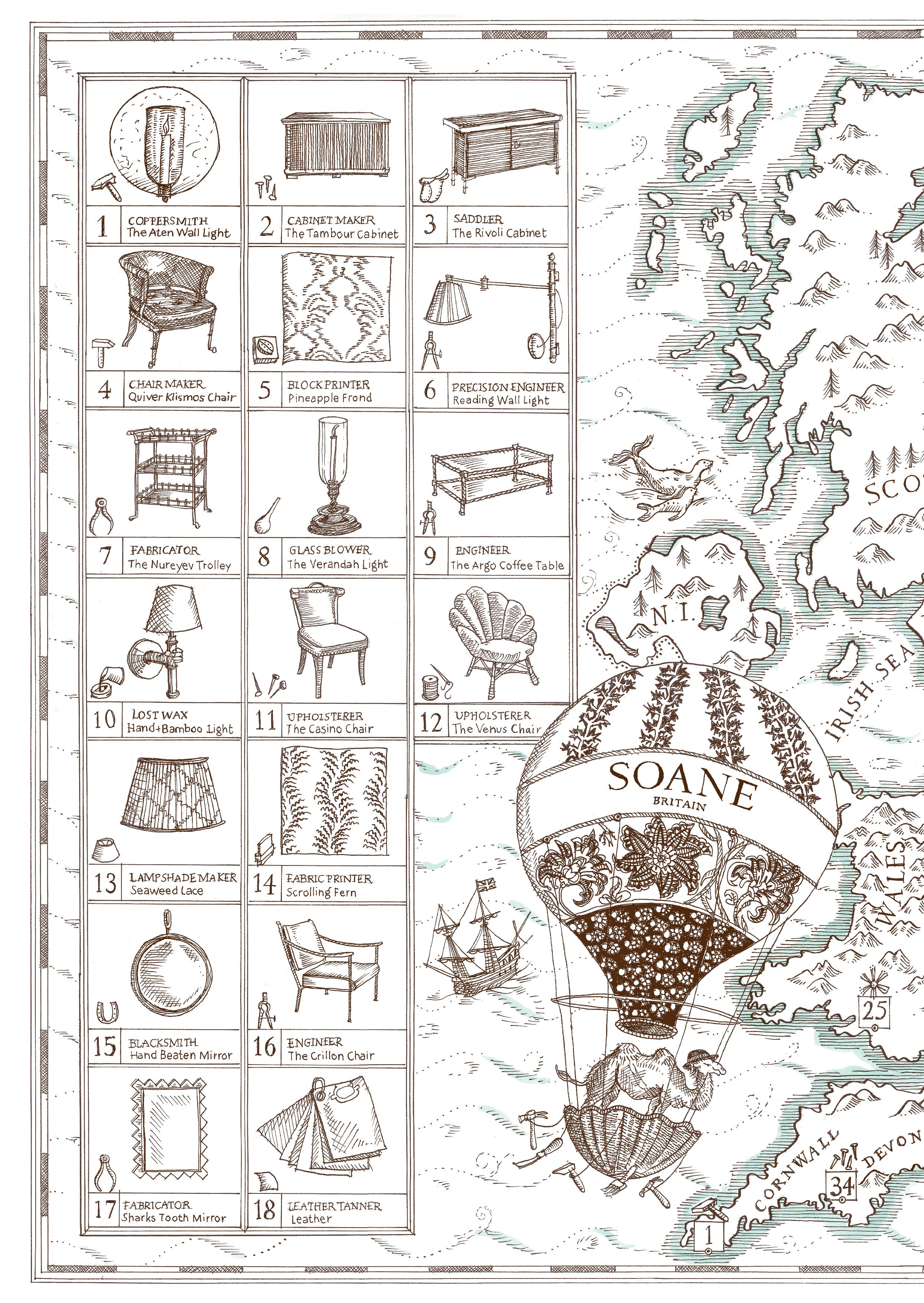 The well-established families within Soane’s furniture and lighting collections are also seeing new additions: counter height stools for modern kitchens are making an appearance within the ‘Argo’ collection with their characteristic twisted brass legs, and also within the finely woven ‘Rattan Loggia’ design. An often requested addition to our collection of tables is a faithful copy of an elegant late 19th century tray on a foldable wooden stand.