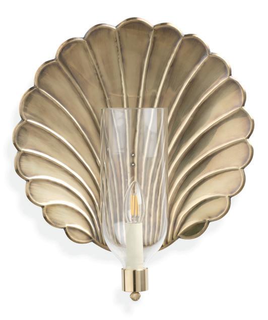 Other introductions to our lighting designs include variations of the classic beaten brass Scallop Light. As well as an incarnaton of the Shell Wall Light which is designed to be used with a glass hurricane shade and candles both inside and in covered areas outdoors. Every detail has been meticulously developed and includes a charming and finely worked shell motif sitting discretely below the shade.