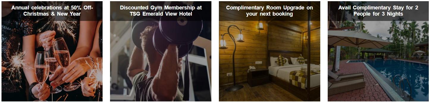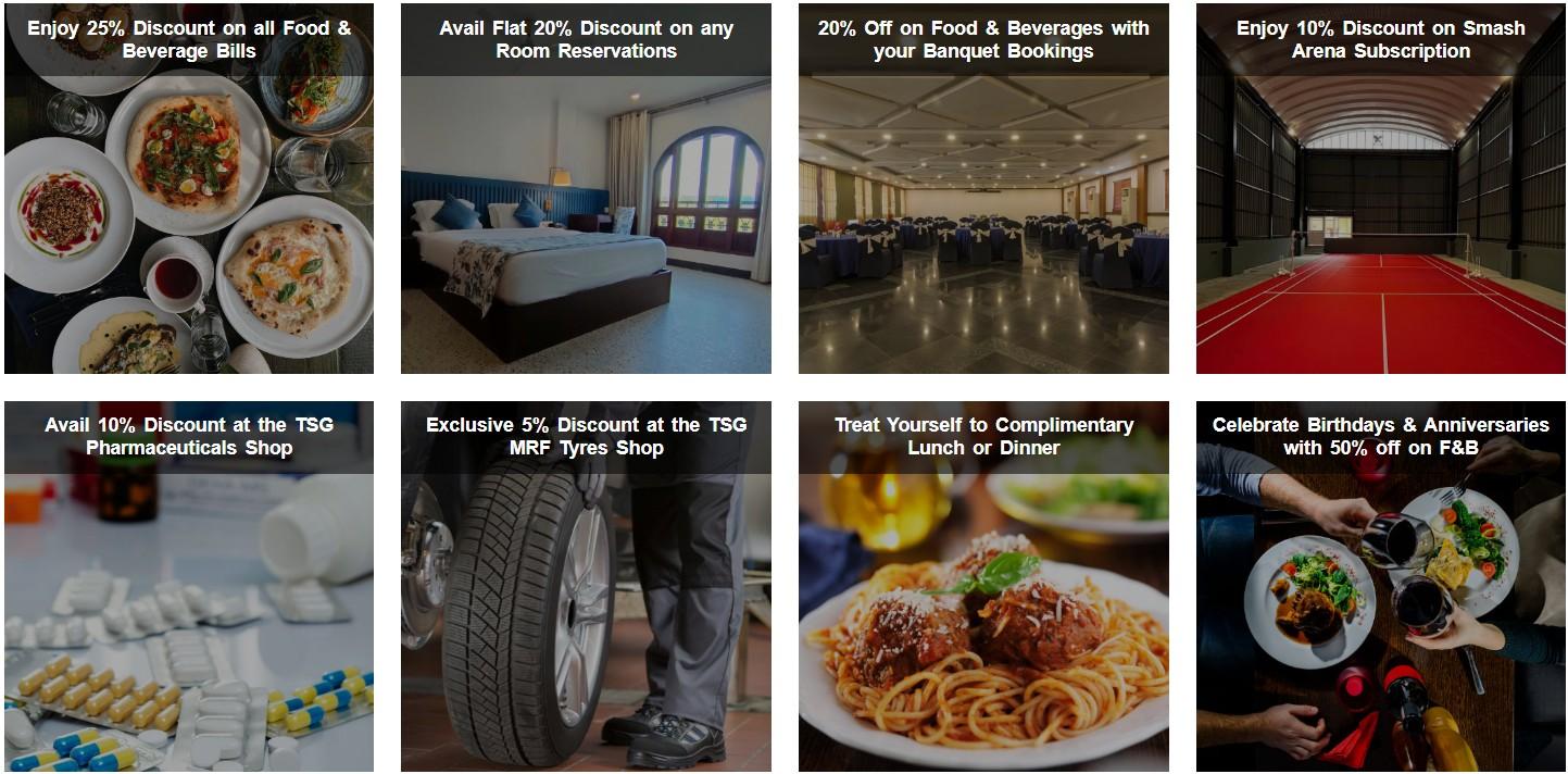 We are thrilled to extend an exclusive invitation for membership to The TSG Club, an elite privilege program that unlocks a world of exclusive perks and irresistible discounts across our esteemed establishments across Andaman Islands-TSG Hotels and Resorts, TSG Pharmaceuticals, Smash Arena, and TSG MRF Tyres Shop. As a valued member, you will be bestowed with a prestigious discount card and complimentary vouchers, along with an exciting opportunity to avail discounted access to the TSG Emerald View gym in Port Blair. Embrace this unparalleled opportunity to elevate your lifestyle.