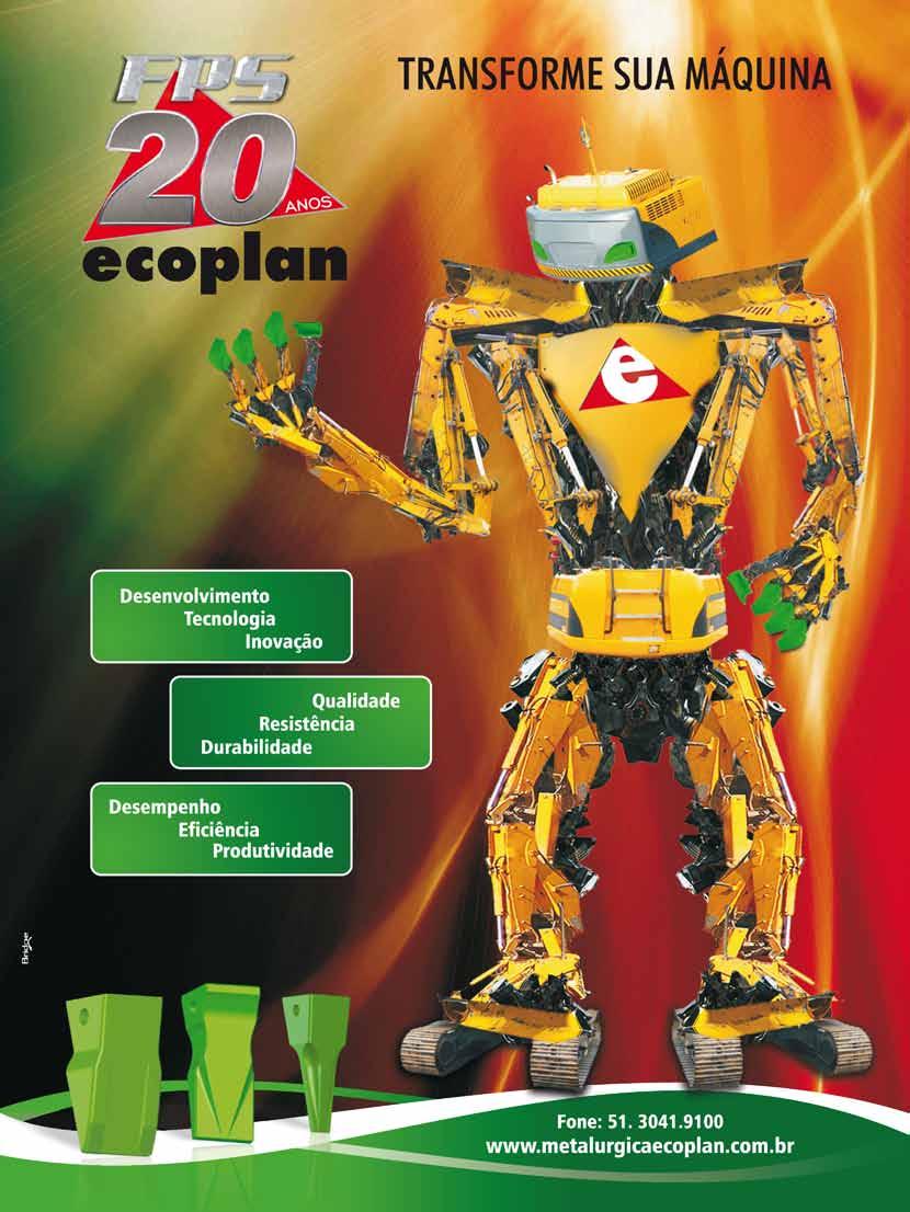 Outros dois temas de reportagens envolvem as dicas de como planejar uma frota e ciente com ferramentas de penetração de solo adequadas para os equipamentos e a melhor escolha de modelos de pás carregadeiras que atendam às demandas de movimentação de terra. Essas reportagens vão além da área de gestão de equipamentos, pois envolvem lições de planejamento e engenharia que podem ser replicadas em outras áreas. Por m, a matéria sobre a usina hidrelétrica de Belo Monte fecha o ciclo de estudos de caso de como o planejamento faz a diferença. Boa leitura.