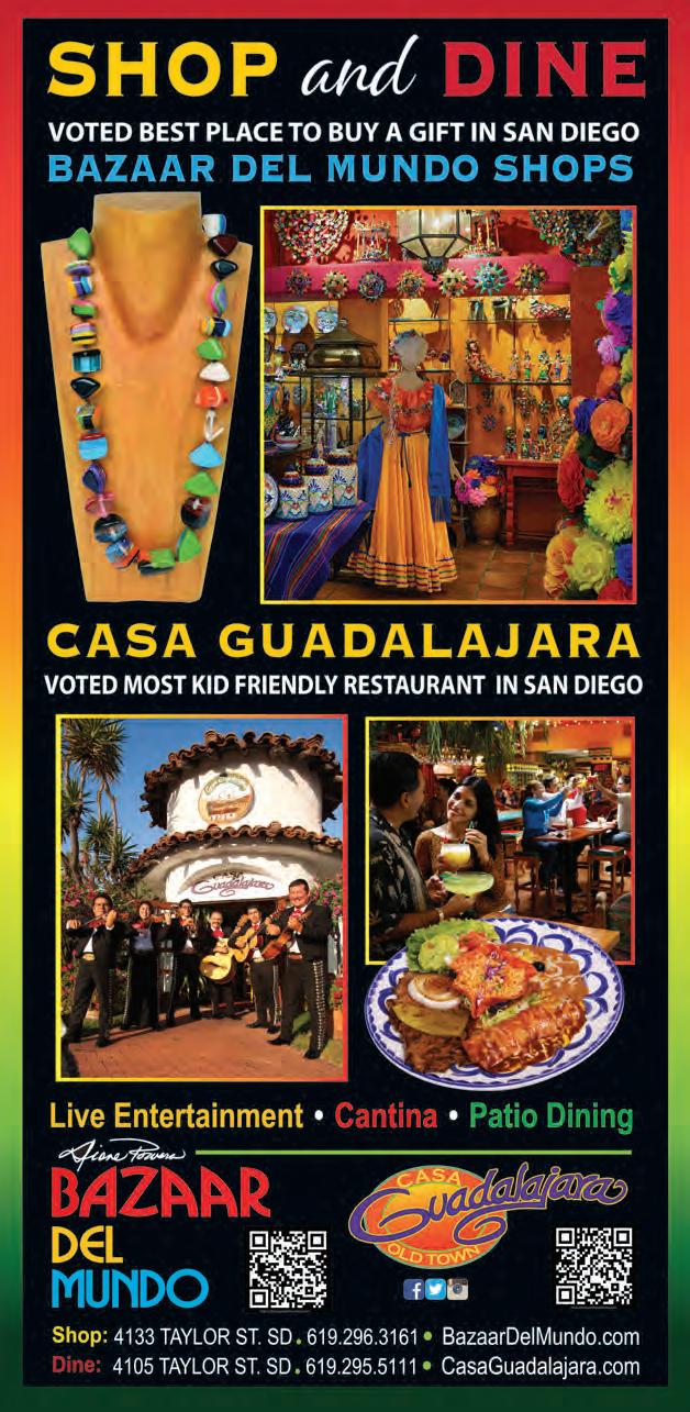 This colorful collection of shops has been an Old Town treasure for 50-plus years—featuring Mexican decor, authentic folk art, clothing, jewelry, accessories, artwork, housewares, gifts, and the festive Casa Guadalajara Mexican restaurant. 4133 Taylor St., Old Town, 619.296.3161 Map M14