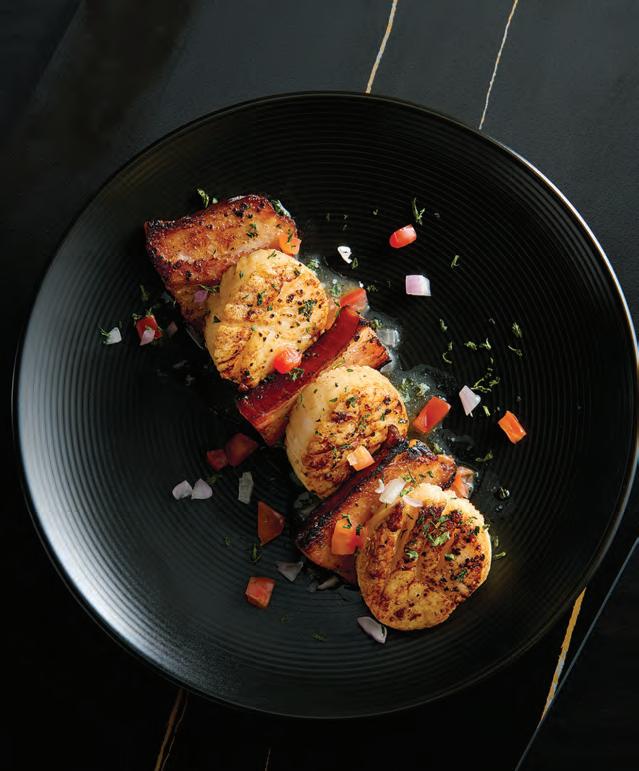 Top sellers include the off-menu Lemon Drop— prepared tableside with dry ice, dramatically bubbling and “smoking” in the glass—and onmenu Dream Berry, like an elegant strawberry lemonade. The classic go-to? The Get Loose with the Goose vodka martini with caper berries.