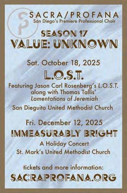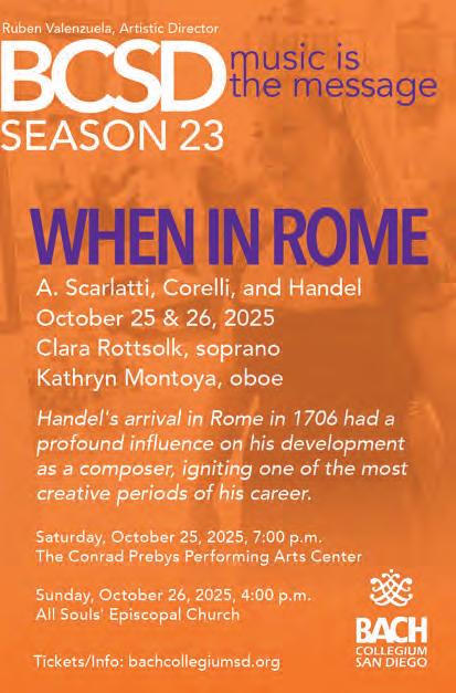 while another actor is also in love with her. Tragedy ensues… sdopera.org October programming for San Diego Symphony at the Jacobs Music Center includes: “Romantic Visions: Schumann’s Symphony No. 2,” with maestro Rafael Payare conducting and featuring guest pianist Javier Perianes, Oct. 11-12; and “Mendelssohn & Korngold: From Prodigy to Master,” with Gemma New conducting and featuring guest violinist Geneva Lewis, Oct. 17-18. sandiegosymphony.org