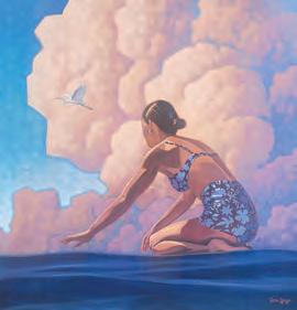 Coastal art at California Surf Museum (from top): “Goat Trail” by Jesse Miller; “Afternoon Clouds” by Thomas Rogo.