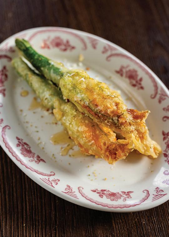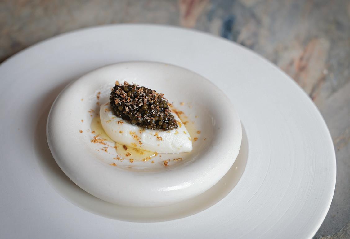 Caviar atop orgeat ice cream at Lilo; zucchini blossoms at Civico 1845.