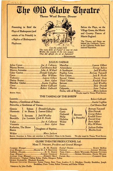 A program for the 1935 Shakespeare plays, presented by The Old Globe Theatre.