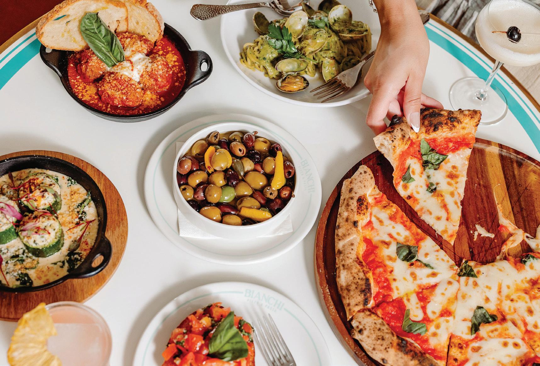 Italian fare by the bay thanks to Bianchi Pizza & Pasta—the latest culinary concept by Evans Hotels, now open at Bahia Resort Hotel. Open for dinner daily, the casually elegant restaurant offers cozy indoor dining, a 45-seat piazza-style patio, private dining for groups, and a marble bar. The menu—crafted by chef Ignazio Tagliavia (who was born and raised in Palermo, Italy)— offers artisanal pizzas wood-fired in a Marra Forni oven; pasta dishes such as spaghetti with clams and