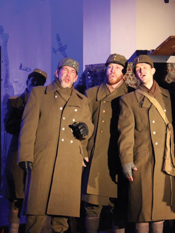 word—without instru mental accompaniment. It’s based on real-life events that took place during the Great War along the Western Front. Soldiers from France, England and Germany ventured into no-man’sland on Christmas Eve and Christmas Day to exchange food and gifts and bury their dead. Games of soccer were played, and many encoun ters ended with singing Christmas carols. The truce was unofficial and
