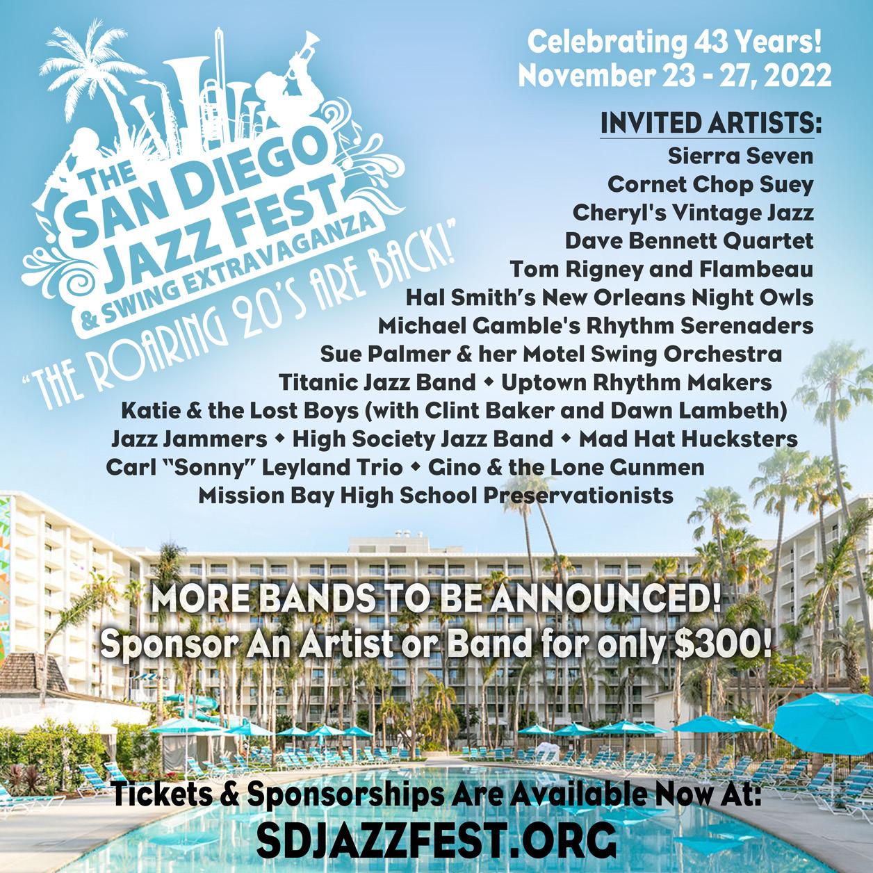 The High Society Jazz Band, slated to perform at San Diego Jazz Fest; culinary delights at the San Diego Bay Wine & Food Festival.