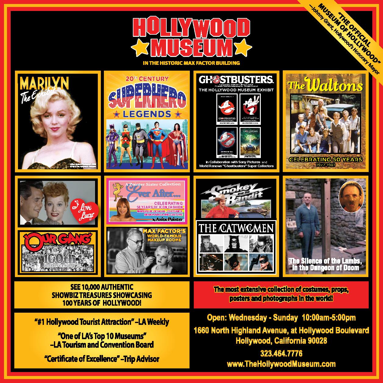 HOLLYWOOD MUSEUM In the historic Max Factor Building, steps from the Walk of Fame, the Hollywood Museum houses 10,000 authentic showbiz treasures that showcase 100 years of Hollywood’s entertainment industry. W-Su 10 am-5 pm. $5-$15. 1660 N. Highland Ave., Hollywood, 323.464.7776 Map H13