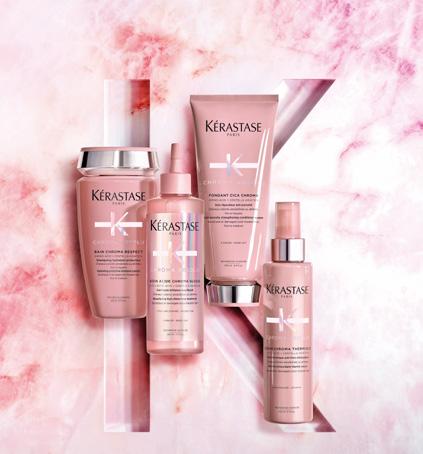 ‘Chroma Absolu’ es la nueva línea especia lizada de la firma Kérastase para reparar los daños que se producen en el cabello con coloración. La rutina completa consta de un shampoo, un acondicionador, una máscara, un sérum y un soin acide. En conjunto, estos productos brindan un recurso insuperable para combatir el frizz estático, el quiebre y la oxidación del color.