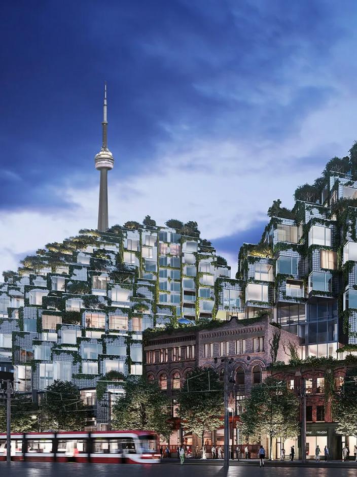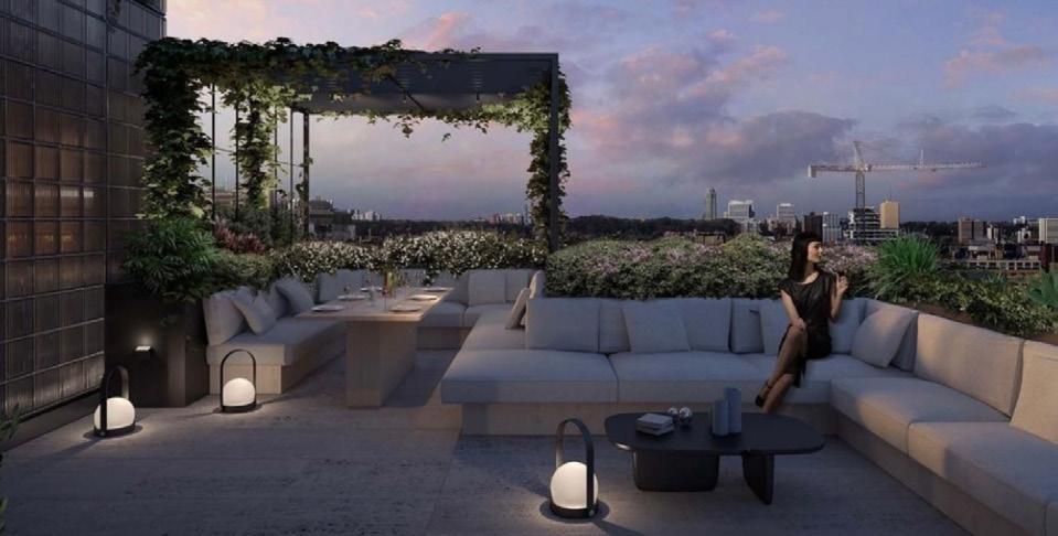 escalera curva del mismo material, ambas diseñadas a medida. El diseño de King Toronto, cuya finalización está prevista para el otoño de 2023, fue ideado por el arquitecto danés Bjarke Ingels y presenta una silueta única en forma de bloque, formada por cajas de cristal apiladas orgánicamente y rodeadas de árboles y otras plantas. El ‘Treehouse’ es uno de los seis penthouse que ofrece la estructura, todos los cuales incorporan árboles, follaje y terrazas en sus diseños. El efecto es el de “vivir en la cima de una montaña”, según el promotor del edificio, Westbank. “Será un lugar muy apartado y privado. Como está en la última planta, es muy difícil que la gente mire hacia arriba. Además, está rodeado de zonas verdes”, explica Riz Dhanji, presidente de la empresa de marketing que representa a Westbank.