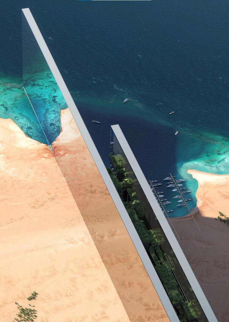 Mohammed bin Salman, príncipe heredero de Arabia Saudita, anunció los diseños para The Line, una revolución urbanística con el objetivo de crear la estructura más grande del mundo. El proyecto final posee un lapso de construcción de 50 años y la ambición final de albergar a cinco millones de personas. El costo de tamaño sueño faraónico es de un billón de dólares y estará formado por dos edificios paralelos de 500 metros de alto, 200 metros de ancho y 120 kilómetros de largo conectados por pasarelas que correrán en una línea a través del terreno costero, montañoso y desértico.