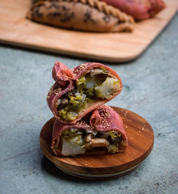 Puede haber variedades con arvejas y carne de llama, el animal típico de la región. La provincia además tiene un lenguaje propio: el repulgue se llama “simbado”, el relleno “recado” y la carne no se pica, sino que se “muele”. Se acompaña con salsa picante.