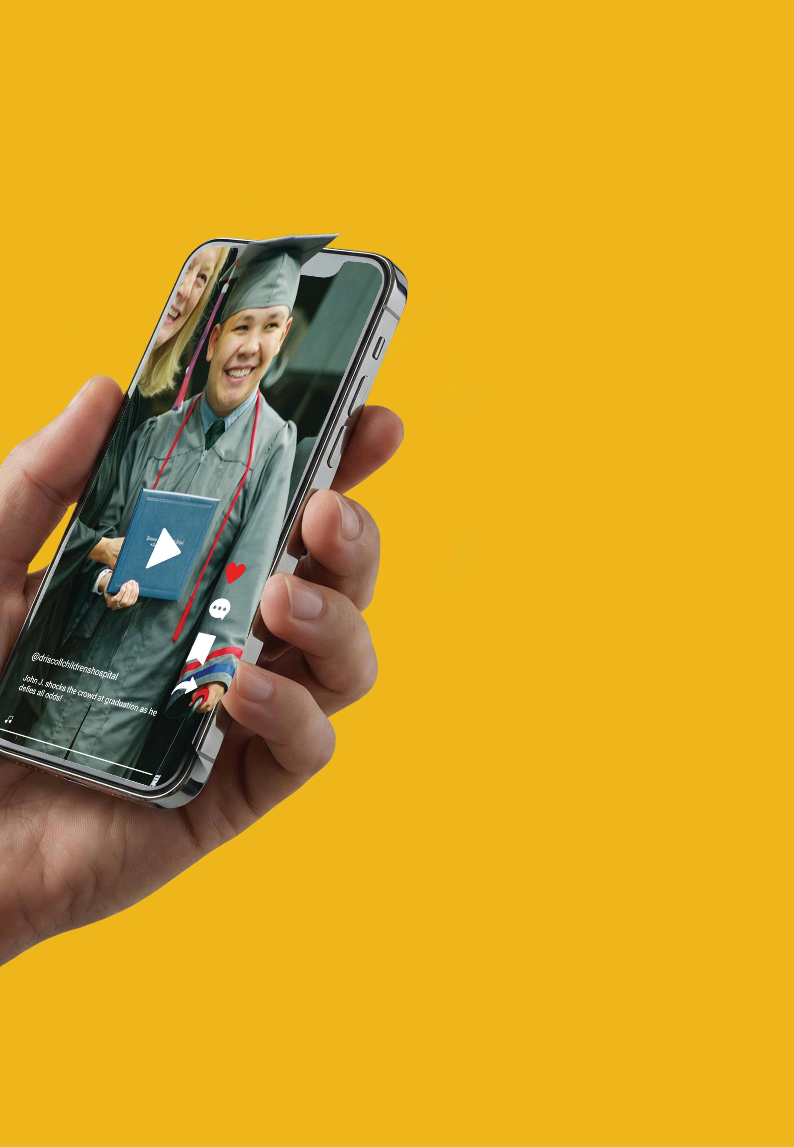 On graduation day, John J was wheeled to the stage by his therapists. With their support, he stood up and walked across the stage to receive his diploma.