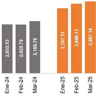 Durante el primer trimestre de 2025, los precios de la plata registraron una tendencia ascendente, impulsada por factores tanto industriales como financieros. En enero, el mercado respondió al descenso de inventarios a nivel global y a la expectativa de una política monetaria más flexible por parte de la Reserva Federal, lo que consolidó el posicionamiento del metal como activo refugio. En febrero, la cotización se mantuvo al alza, respaldada por una demanda sostenida en sectores como el tecnológico y el de energías renovables, donde la plata cumple un rol clave. En marzo, los precios continuaron en aumento, favorecidos por un contexto de incertidumbre económica y tensiones geopolíticas que incentivaron la búsqueda de activos seguros. En conjunto, el primer trimestre evidenció una recuperación sostenida frente al cierre del año anterior, respaldada por una mayor demanda y por un entorno financiero internacional que favoreció el desempeño del precio del metal.