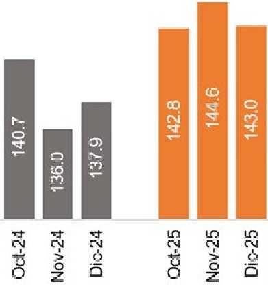 12.0% por encima del precio prom. del trimestre anterior (III Trim. 2025: cUS$ 128.1 por libra).