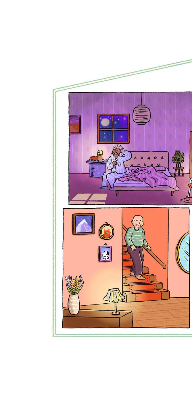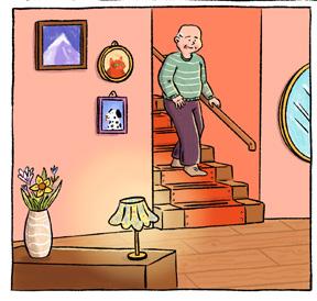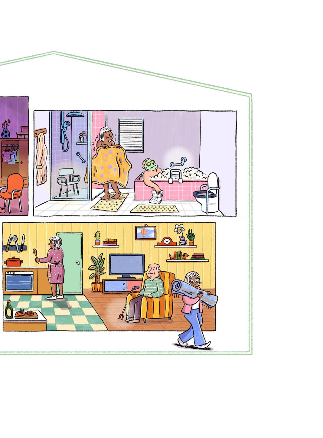 Losliggende tapijten verhogen het risico op vallen. “Als mensen ze niet willen verwijderen, raden we aan om ze vast te zetten met antislipmateriaal,” legt Leonora uit. Zorg voor voldoende ruimte tussen meubels en laat geen rommel slingeren waarover je kan struikelen. Maak losliggende snoeren vast, en plaats je telefoon dicht bij de zetel. Vermijd stoelen of meubels op wielen, die onnodig kunnen verschuiven. Verhoog zetels en stoelen met meubelverhogers om gemakkelijker op te staan of te gaan zitten.