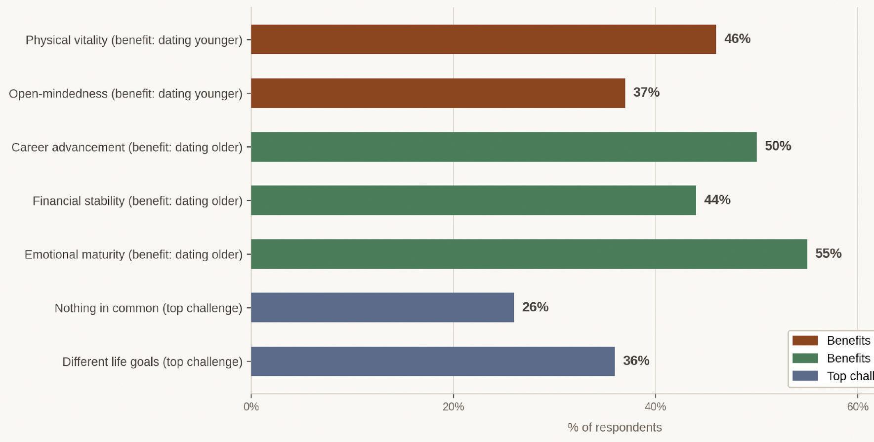 Unpacking the difficulty of finding and staying in a pleasurable relationship. According to Psychiatrist, Dr. Loren Olson, “We have a chronological age, a psychological age, a physical age, and a sexual age. Age-gap couples are frequently compatible in the last three.” Based on this insight, it seems the only question left is, “How do you match up with your partner?”