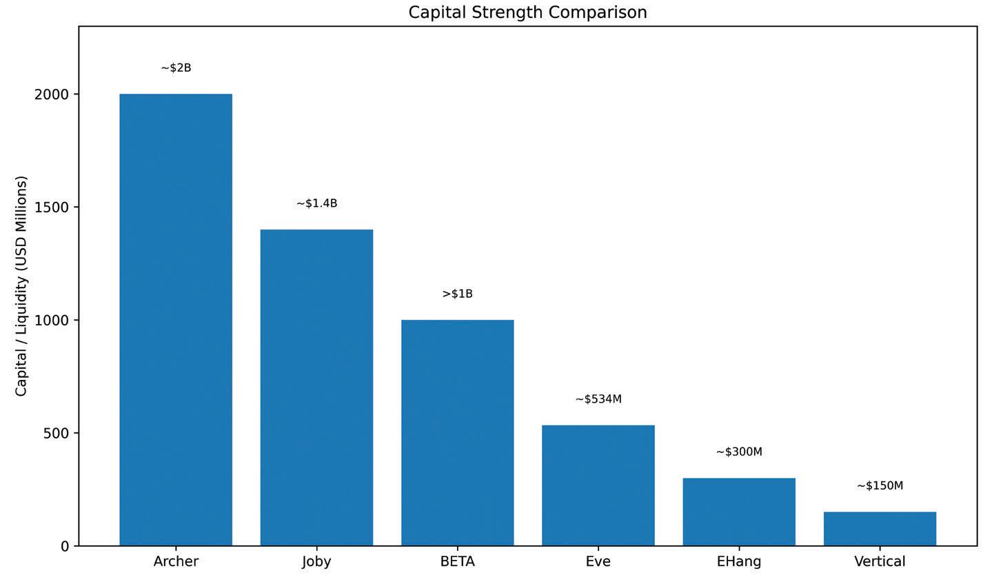 Even companies with weaker financial positions, such as Vertical Aerospace, have secured relationships with major aerospace suppliers. However, funding disparities are becoming increasingly important, as the ability to sustain operations through certification delays will likely determine which companies survive.