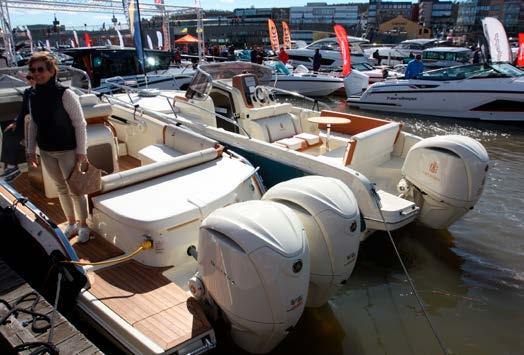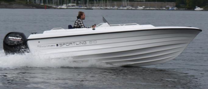 med en singel Suzuki 350 hk., faktisk hele 41 knop i følge produsenten selv. Den er godkjent for opptil 2x300 hk. og har drivstofftank på 465 liter.