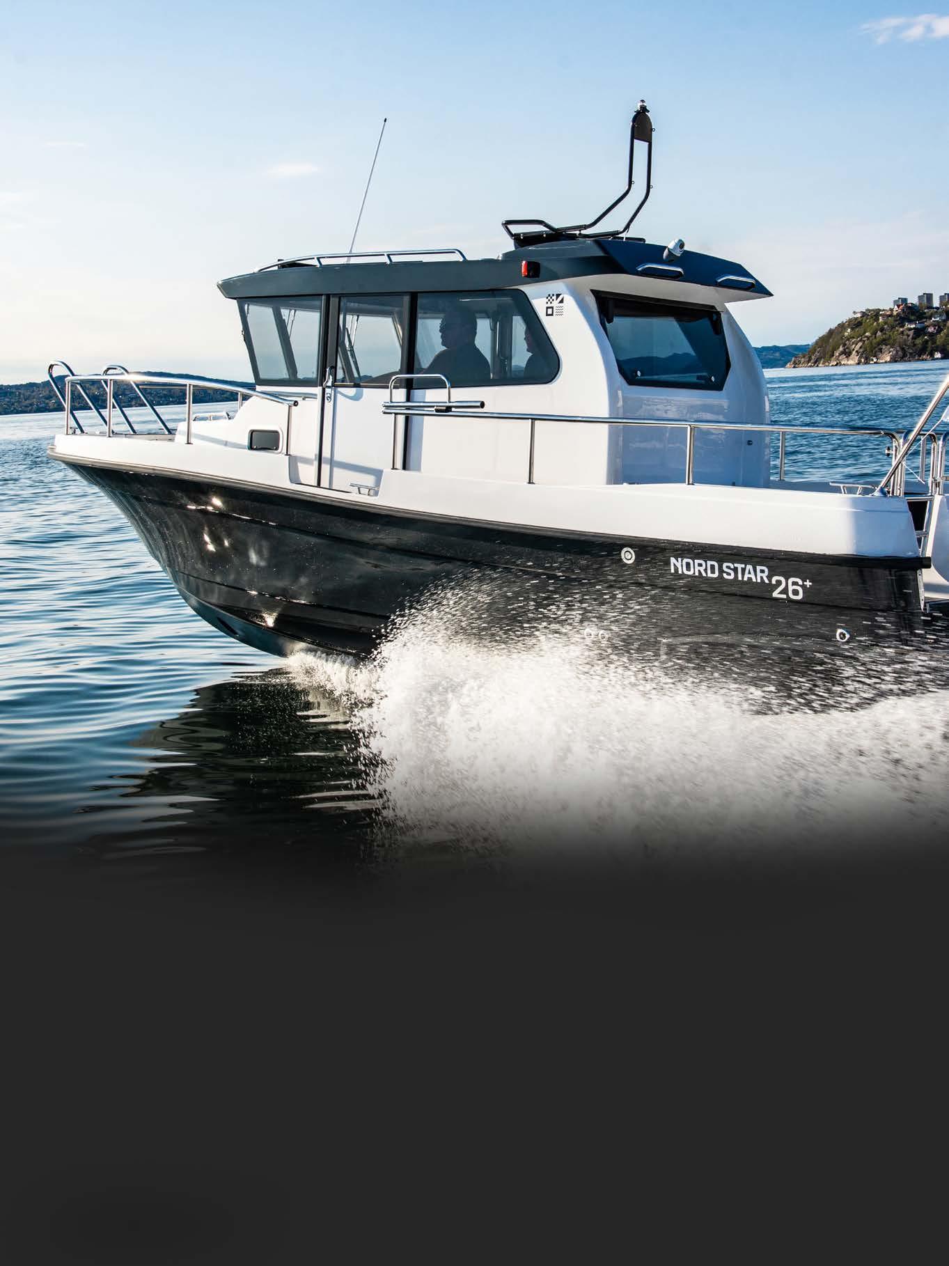 Nord Star 26 Patrol er det opplagte valget for deg som leter etter en sjødyktig transport- og turbåt i all slags vær. I den romslige hytta kjører inntil 6 personer komfortabelt og beskyttet. Senkede dollbord, skyvedører på begge sider og solide, kraftige rekker gjør båten lett å håndtere og sikker i bruk. FINSK HÅNDVERK AV YPPERSTE KVALITET, SIDEN 1920.