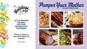 Ready-to-heat options include a main course of roast chicken or ham, a brunch main of stuffed French toast, quiche or mini sandwiches, plus savory sides, bread and a decadent dessert.