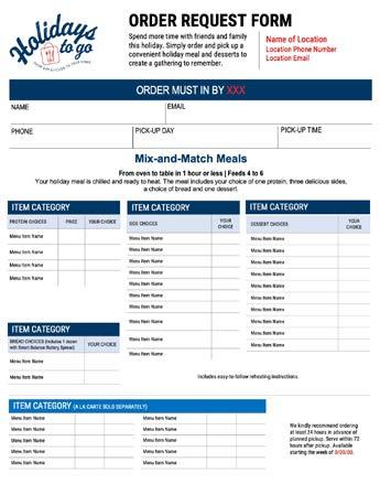 • Guests use the Holidays to Go Order Form to place orders.