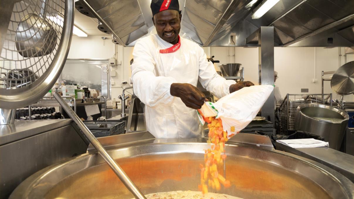 I köket på Universitetssjukhuset i Linköping där Ashkan Farhadi är köksmästare lagas cirka 1 500 portioner varje dag året om.
