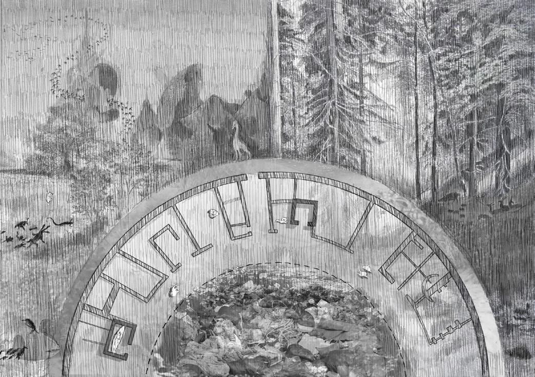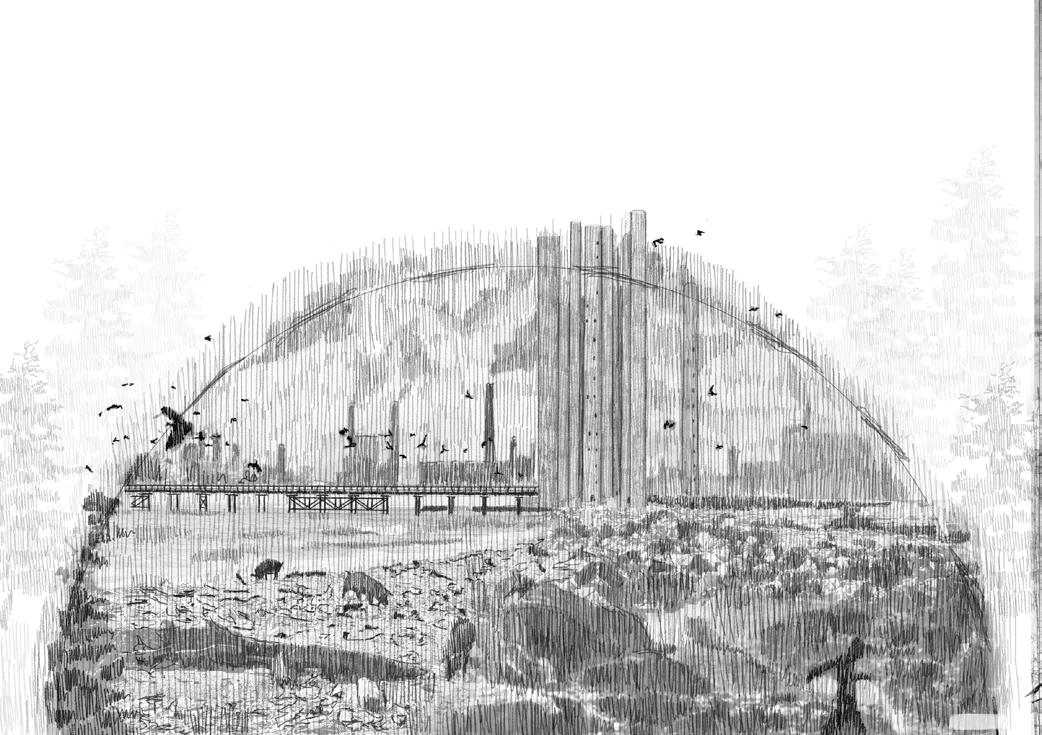 Awareness is the first step. Humanity opens its eyes and accepts nature and the world around it, not as a resource, but becoming a part of it. People begin to feel responsible for their home, shifting themselves from the pedestal of consumption. The transition to utopia is possible by isolating humanity. We create a wall of awareness by being able to interact with nature only by passing through it. People live on the border between dystopia and awareness leading to nature.