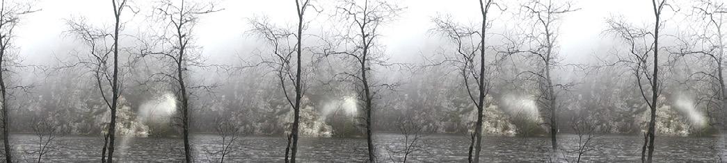 Fog constructs its own narrative of showing objects. Invisible things clean up. You cannot predict this sequence and your path through it. Landscape and human stories combine in the space. Space of memory and moments in time. The natural flows are getting slower and reverse inside, leaving you alone with yourself, which begins to be a start point of the reflection.
