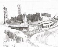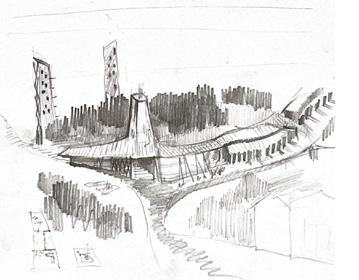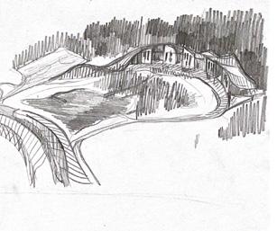 The project was made in collaboration with sculptural course student Mark Esin. Main principles for us were preserving the existing terrain and greening of the territory.