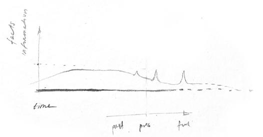 The fog has no boundaries - why do all human constructed places have boundaries? No dimensions, just a coincidence of conditions, flows, particles. Intense currents inside which the shape builds - wind, gravity, humidity, atmospheric - what are these relations?