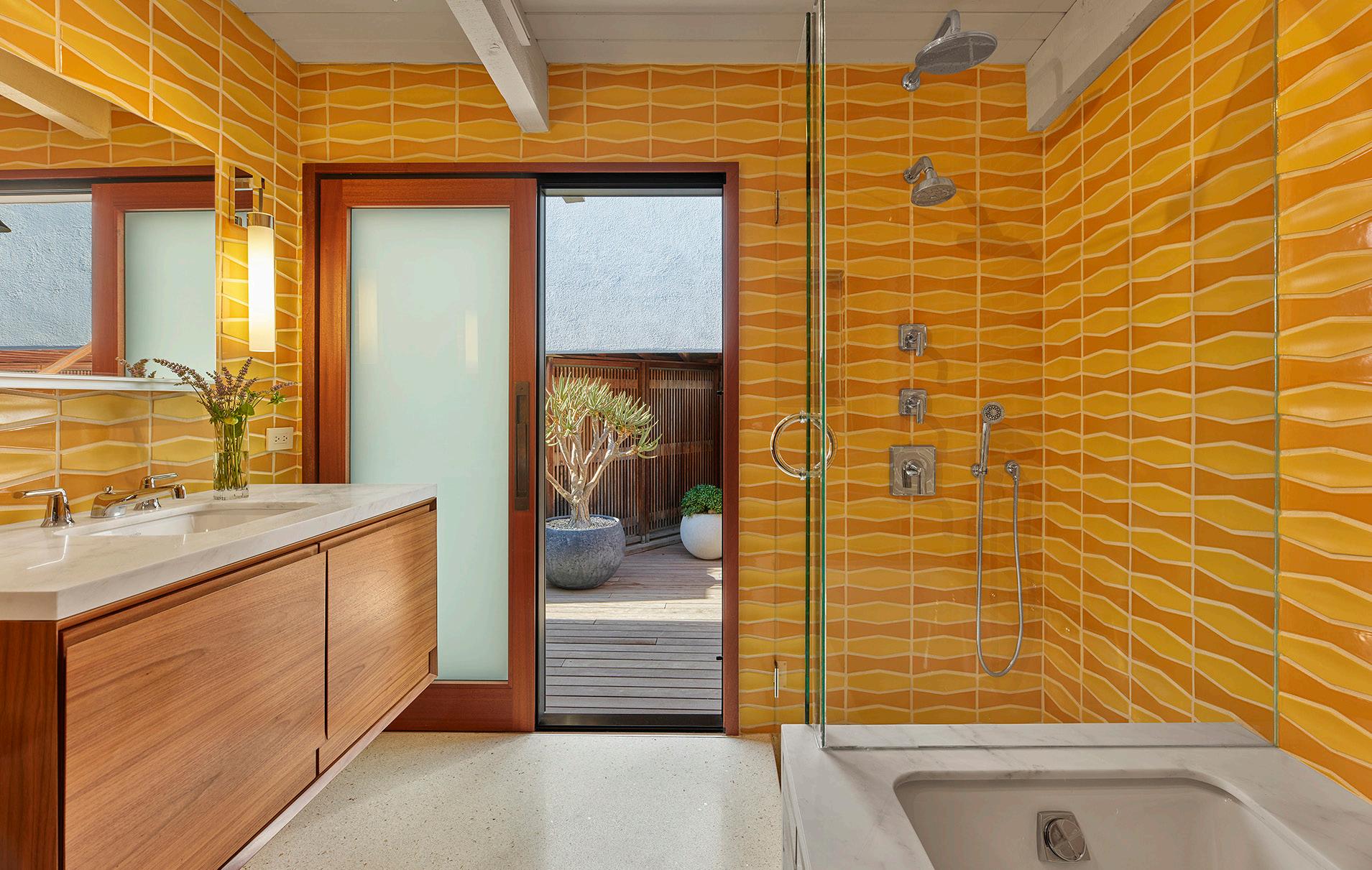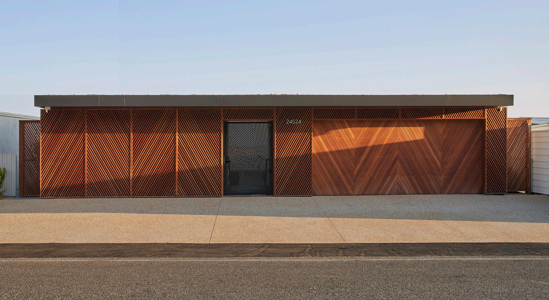 The second phase focuses on interior finishes and a redesigned front façade to create a cohesive procession from street to sea. A refined entry sequence—with new paving, garage door, and integrated lighting—complements the updated interiors, which feature new millwork, lighting, and modernized bathrooms. As an as-of-right project under Malibu’s “<50% Remodel” guideline, the design balances entitlement efficiency with a carefully tailored and high-quality outcome.