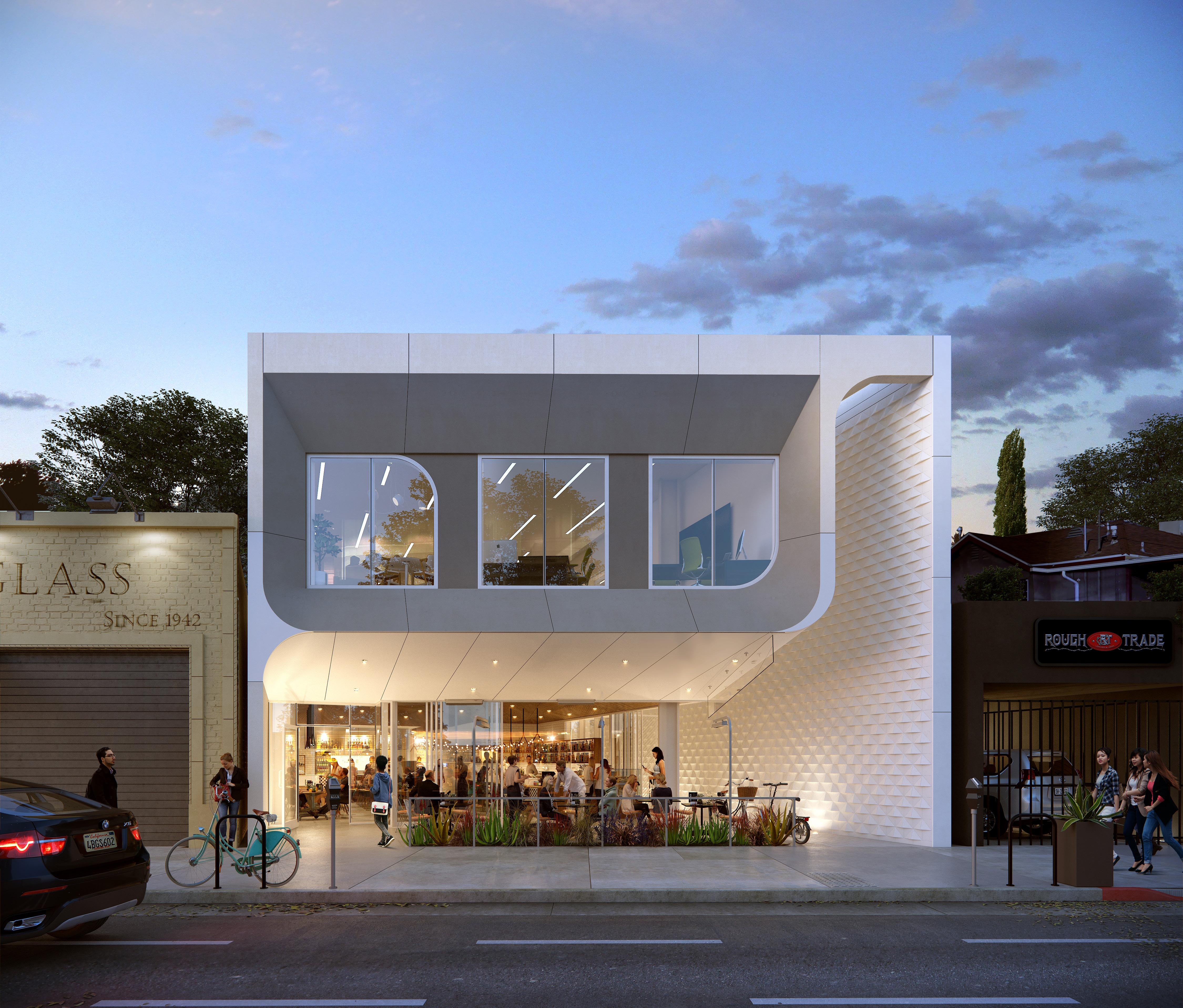 Project Overview: The project is a three-story mixed-use commercial office building (26,300 SF), with 3,100 SF of ground-floor retail and a subterranean parking garage. This infill development is located in the West Adams district, contributing to the revitalization efforts under the new West Adams Community Plan.