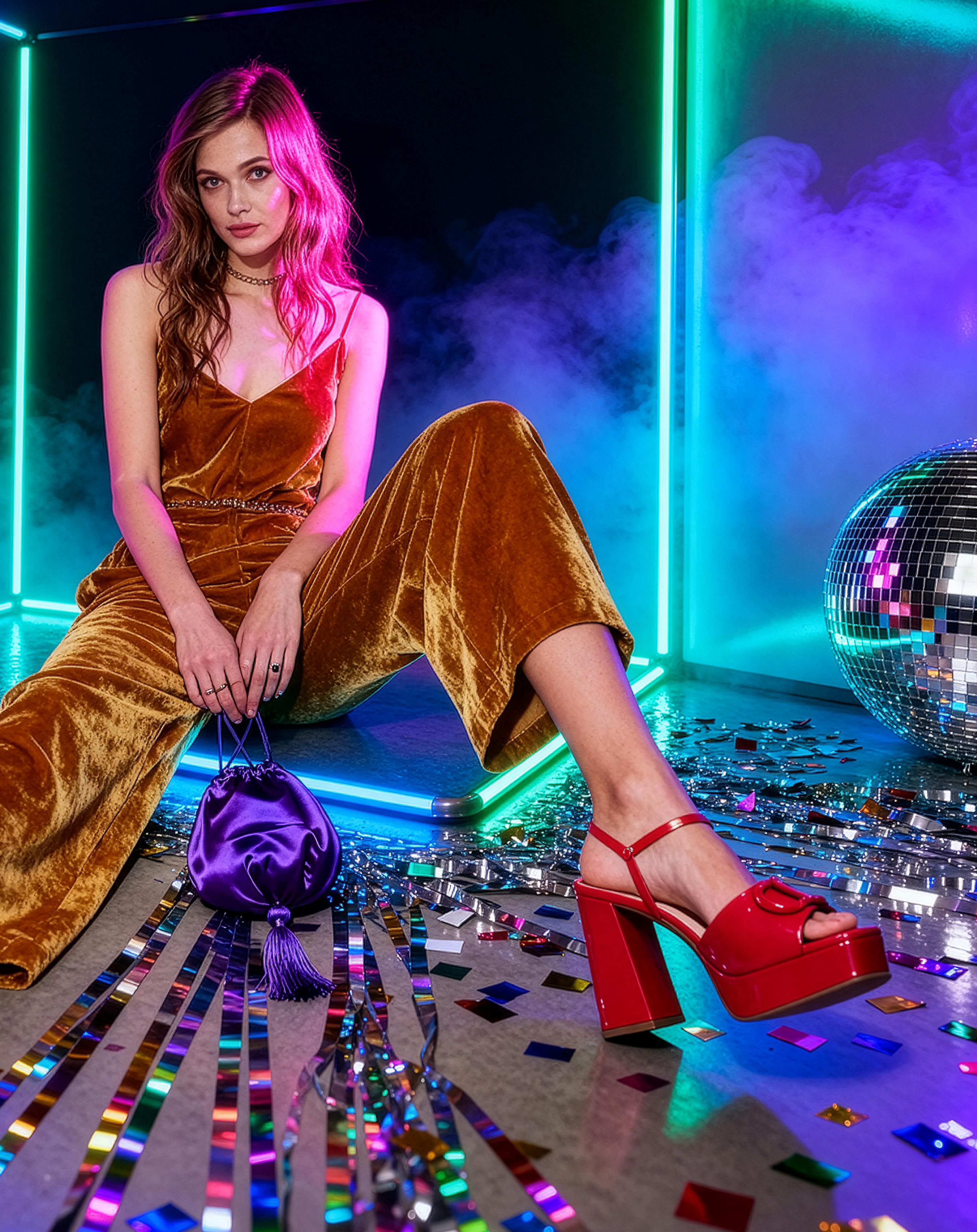 Cuando tú brillas, la noche se enciende. La colección Party Vibes nace para acompañar a la mujer que vive con intensidad, que ama el color y que expresa su poder en cada paso, con diseños que deslumbran sin pedir permiso.