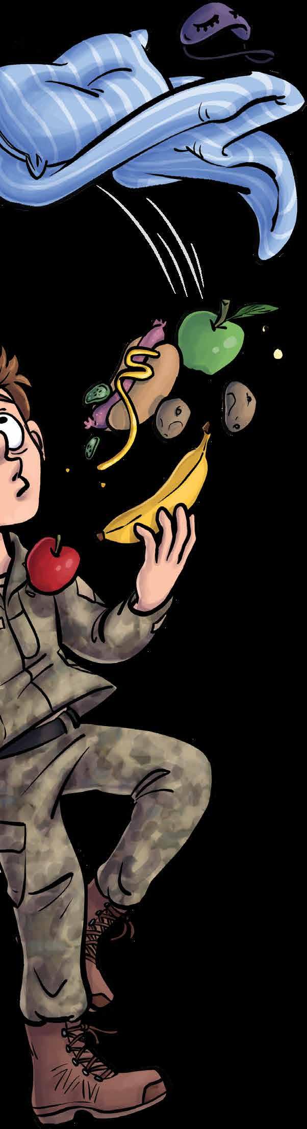 Kroppen har brug for hvile. Midt i feltdage, skydebanedage og marchtræning er det let at glemme, at kroppen skal have ro. For lidt søvn sænker din præstation og træningsudbytte. “Efter en hård dag kan restitutionstræning gøre underværker for kroppens genopbygning,” forklarer Wendell. “Det kan være en gåtur, en let løbetur eller udstrækning på stuen.” Det vigtigste er at give kroppen tid til at restituere for at undgå belastningsskader. “Forsøg at få 8 timers søvn hver dag. Hvis du ikke får nok søvn, vil din præstation i felten falde, og du vil restituere dårligere. Det kan betyde øget risiko for skader og dårligere træningsresultater .”