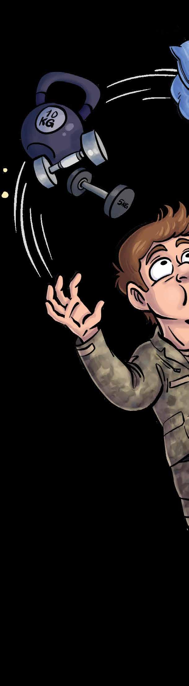 I værnepligten bliver der stillet krav til din fysik. Hverdagen er uforudsigelig, og arbejdskravene er alsidige. Derfor skal en soldat være veltrænet i alt fra udholdenhed og styrke til mobilitet. “Når du star ter i værnepligten, skal du være en all-rounder. Er du vant til at træne ensidigt, kan du opleve nedgang i den sport, du dyrkede før,” forklarer Wendell.